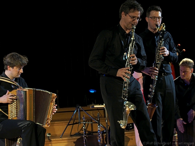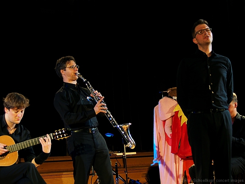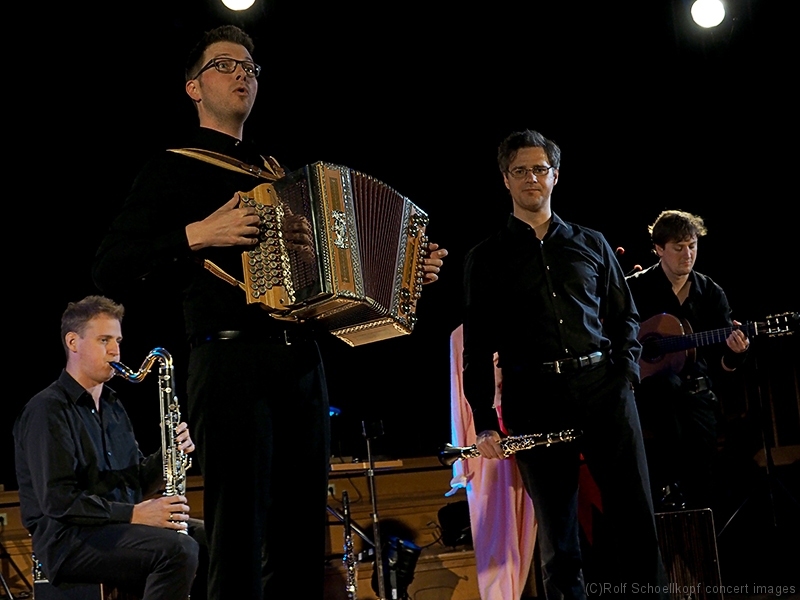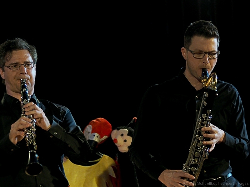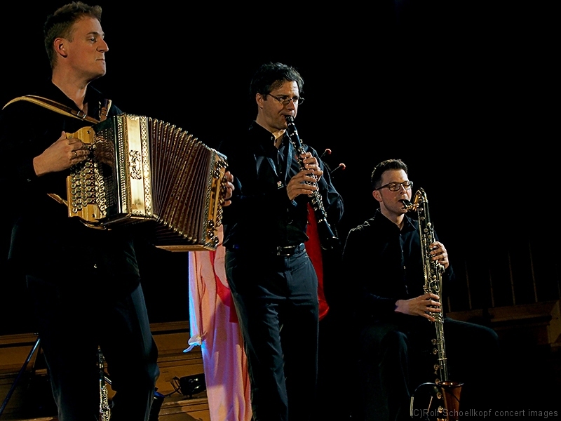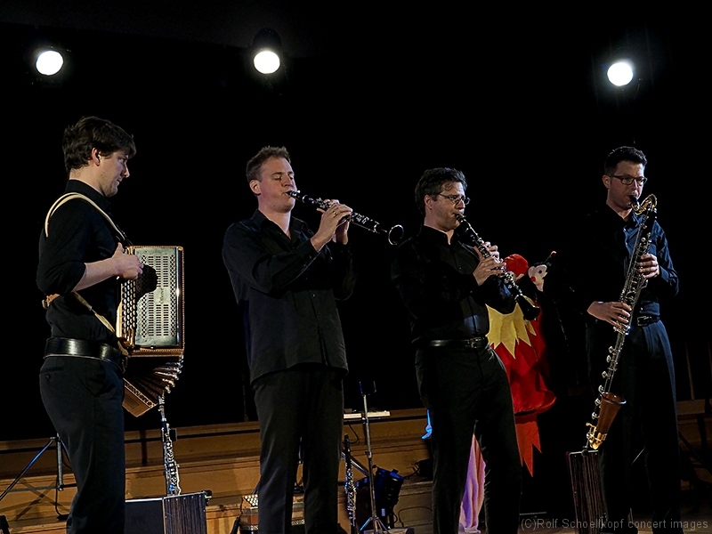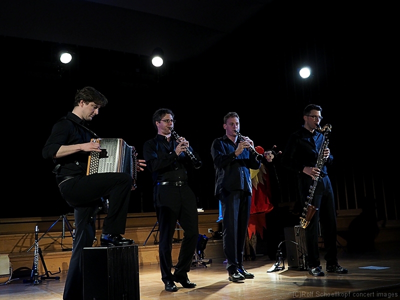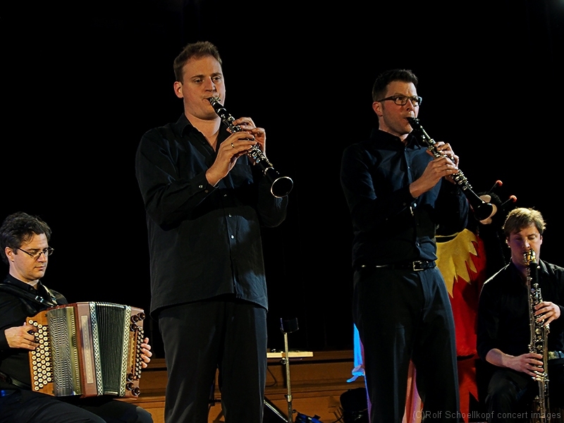 LINE UP   Alexander Maurer – Klarinette, Baßklarinette, Harmonika, Perkussion | Alexander Neubauer – Klarinette, Bassetthorn, Baßklarinette, Harmonika | Stefan Prommegger – Gesang, Baßklarinette, Klarinette, Harmonika | Matthias Schorn – Klarinette, Perkussion, Harmonika | Lukas Beck – Fotos und Regie | LichtDesign:Willy Klose