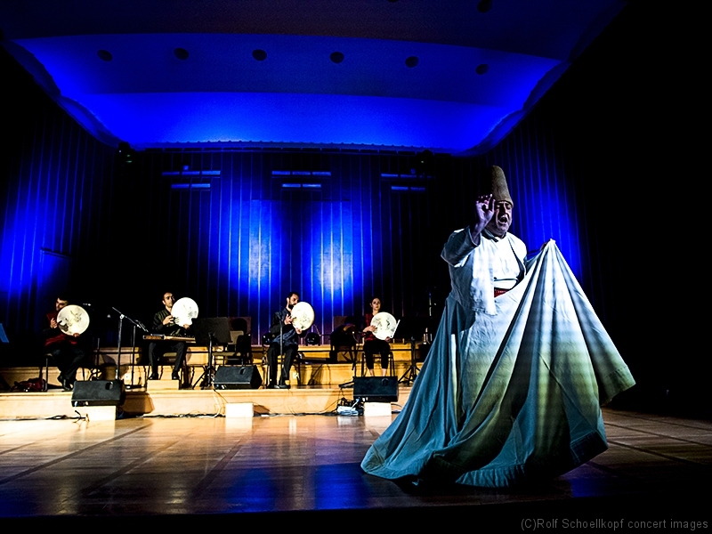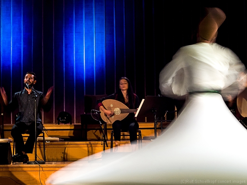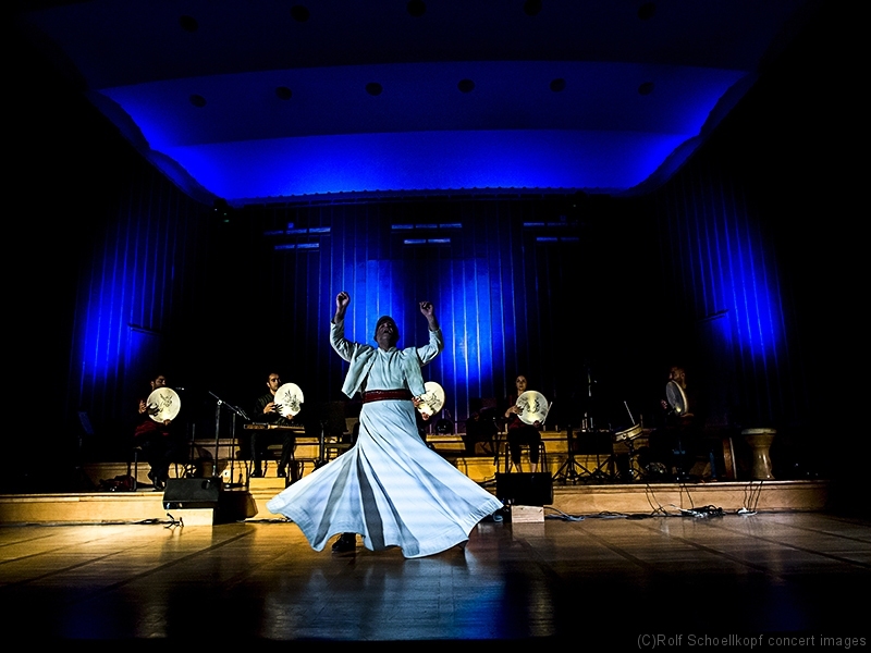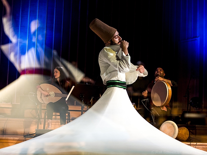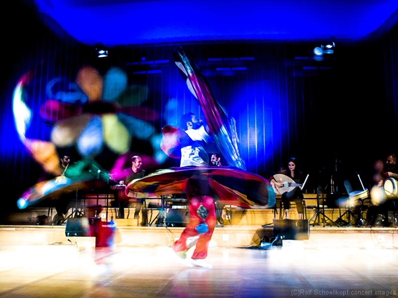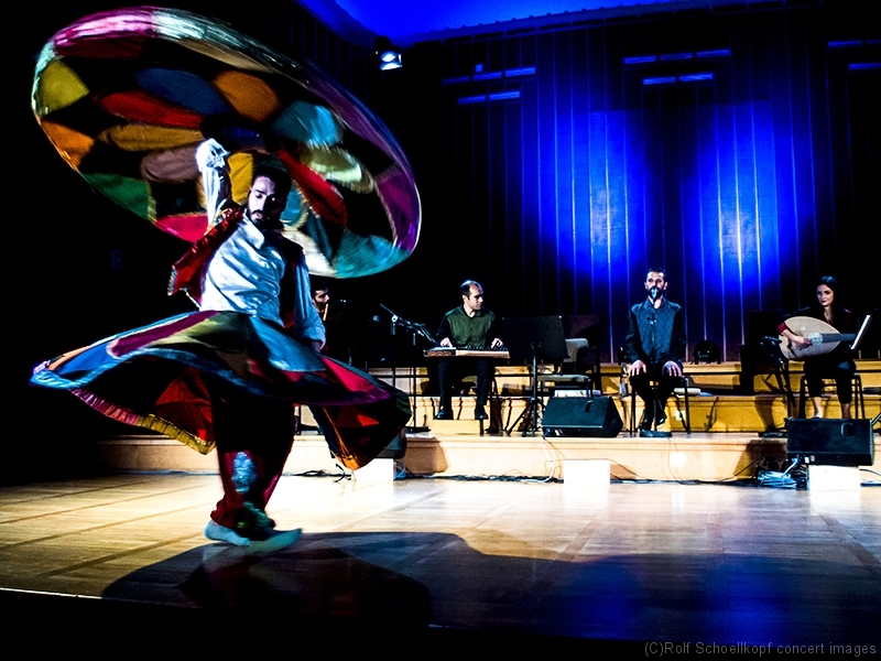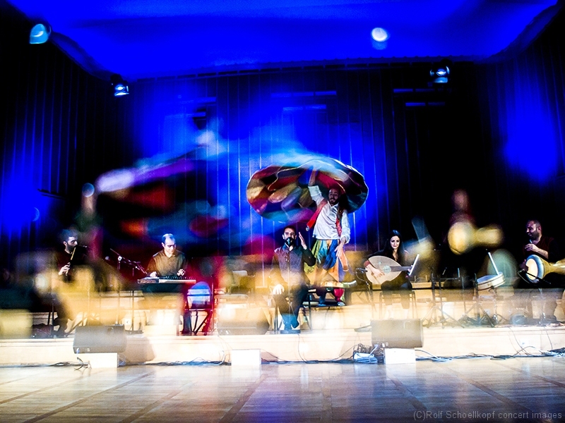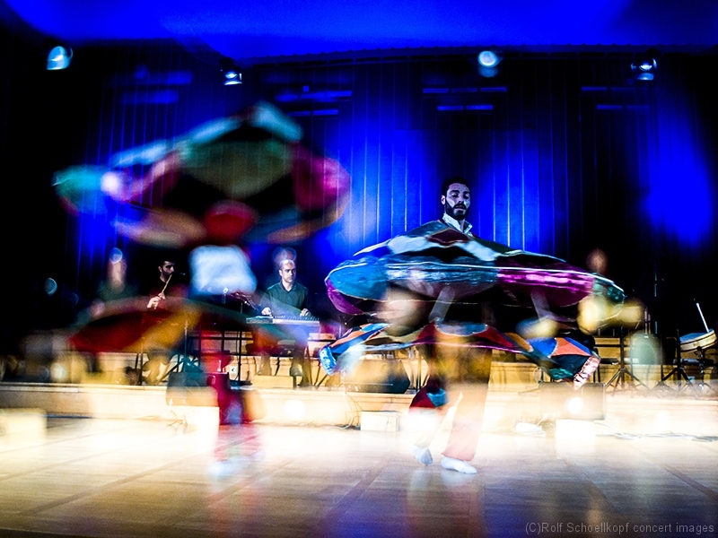 LINE UP Taufik Mirkhan – Qanun | George Oro – Schlagzeug | Hadil Mirkhan – ‚du | Abdul Rahman Modawar – Gesang | Tammam Alramadan – Nay | Ahmad Rifai Hambrouch – Derwisch Tänzer | Hatem Aljamal – Derwisch Tänzer | LichtDesign:Arvid Haye