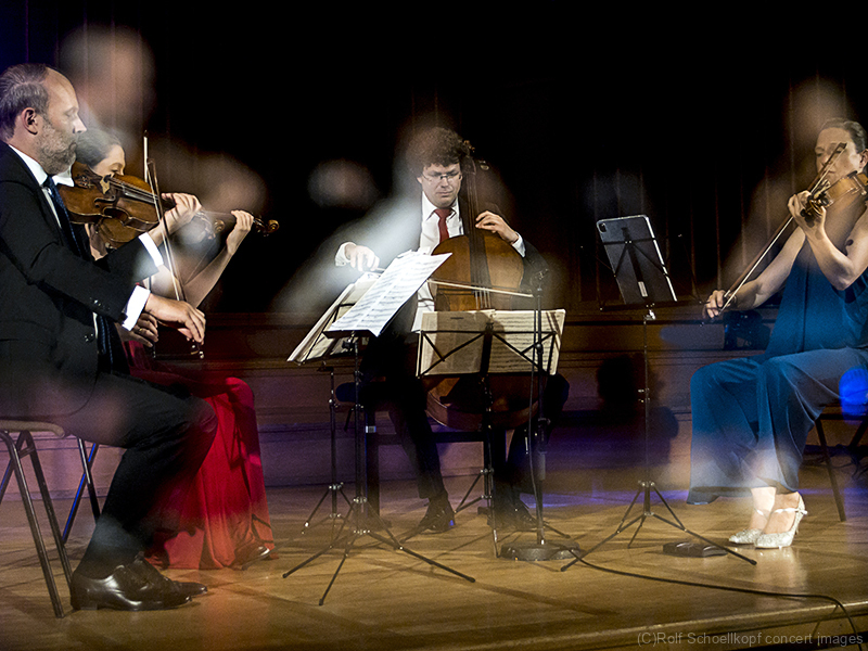 LINE UP Gustav Frielinghaus – Violine | Lena Sandoz – Violine | Mareike Hefti – Viola | Yves Sandoz – Violoncello | LichtDesign: Christoph Kattner