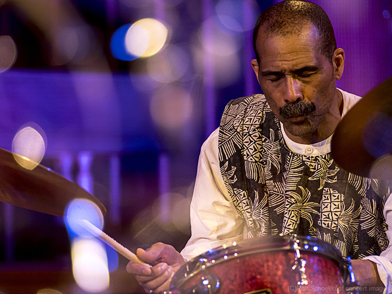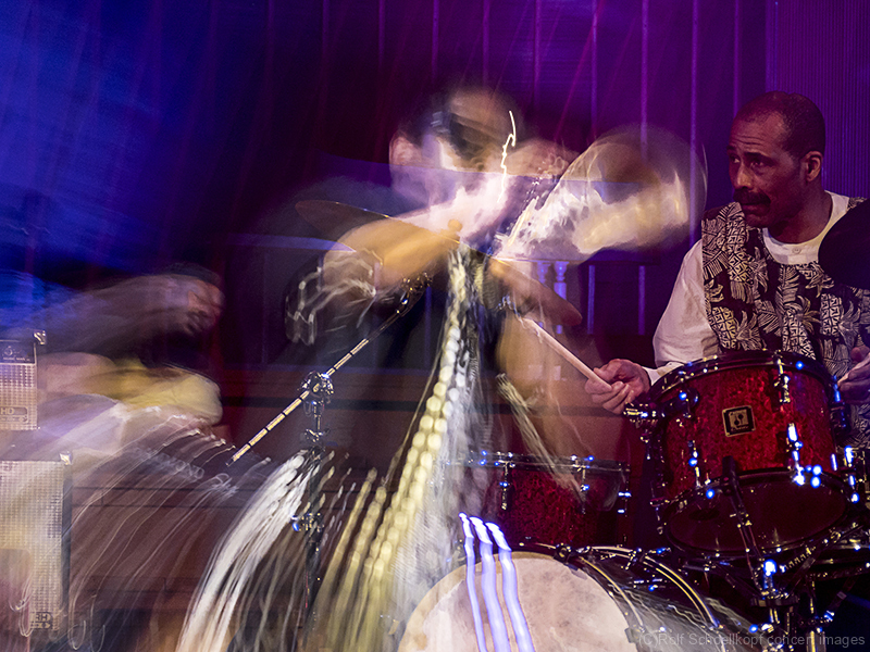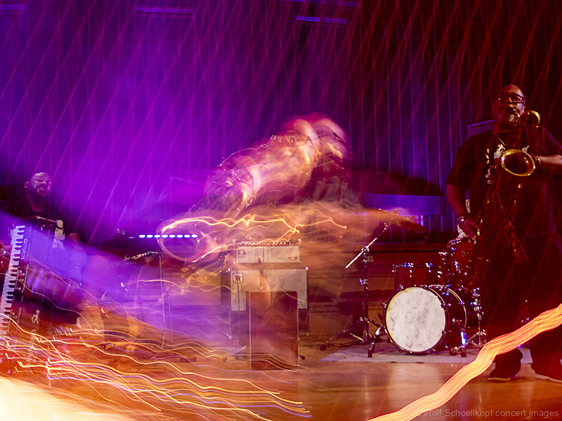LINE UP Kahil El’Zabar – Schlagzeug, Cajon, Kalimba, Stimme | Corey Wilkes – Trompete, Perkussion | Justin Dillard – Keyboards, Schlagzeug | Alex Harding – Tenor- und Sopransaxophon, Perkussion | LichtDesign: Christoph Kattner