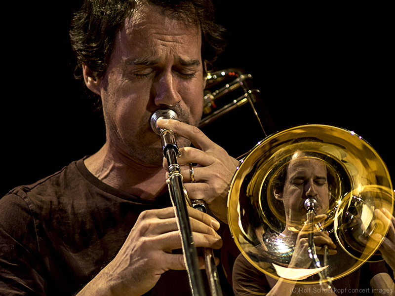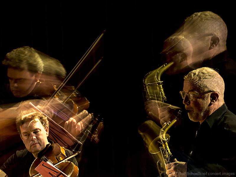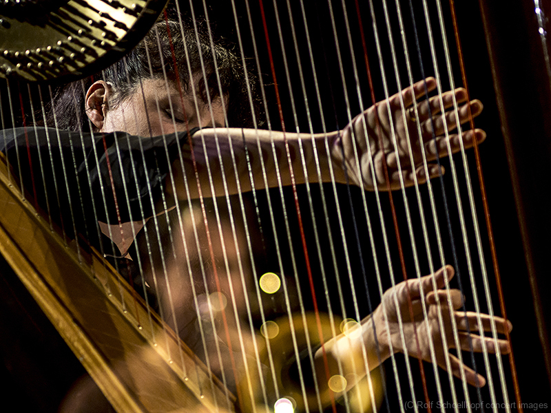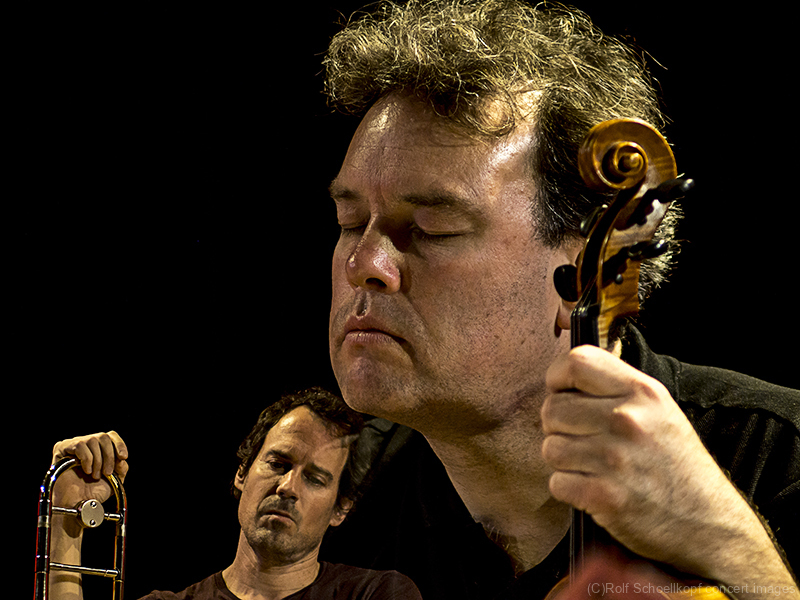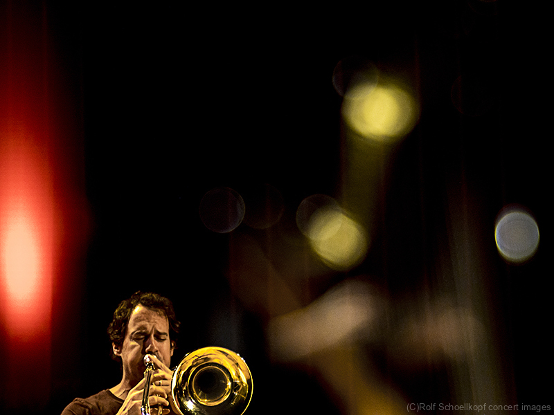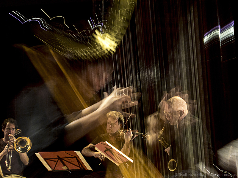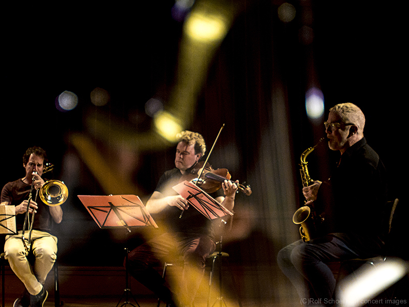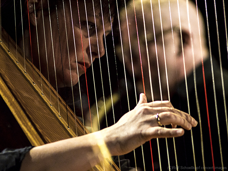 LINE UP Nils Wogram – Posaune | Kathrin Pechlof – Harfe | Gareth Lubbe – Viola, Violine, Obertongesang | Hayden Chisholm – Altsaxophon | LichtDesign: Christoph Kattner