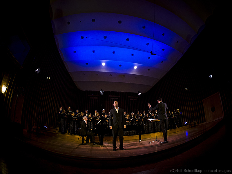 LINE UP Monteverdi-Chor Hamburg | Daniel Ochoa – Bariton | Cristian Peix – Klavier | Antonius Adamske – Musikalische Leitung | LichtDesign: Willy Klose